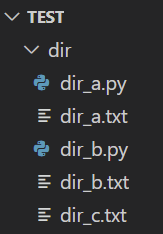 >>> ['dir_a.py', 'dir_a.txt', 'dir_b.py', 'dir_b.txt', 'dir_c.txt']
