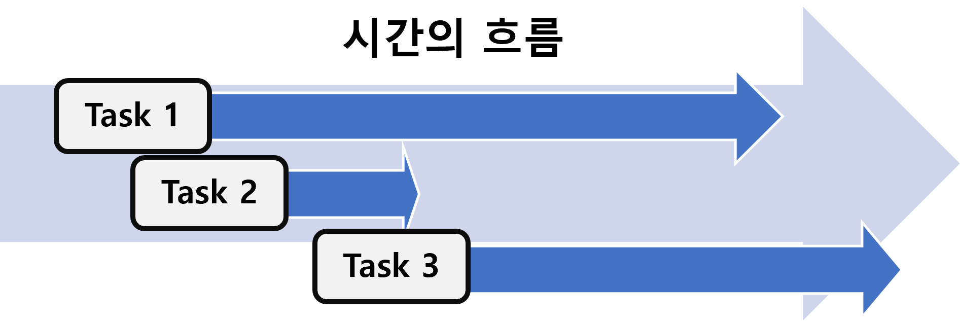 위 그림을 생각해 보면 Task1, Task2, Task3이 순차적으로 실행되며