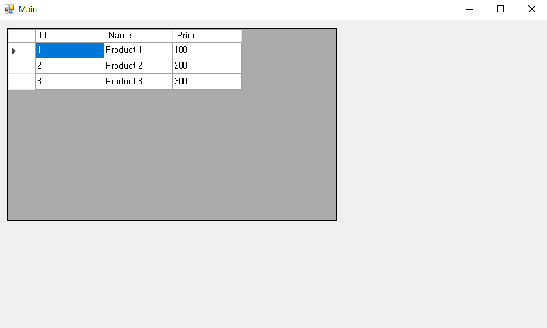 결과를 보시면 List로 선언한 Product 클래스가 DataGridView의 데이터 소스로 바인딩된 것을 확인이 가능합니다.