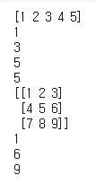 - NumPy의 배열은 파이썬 리스트 처럼 인덱스로 요소에 접근 가능합니다.