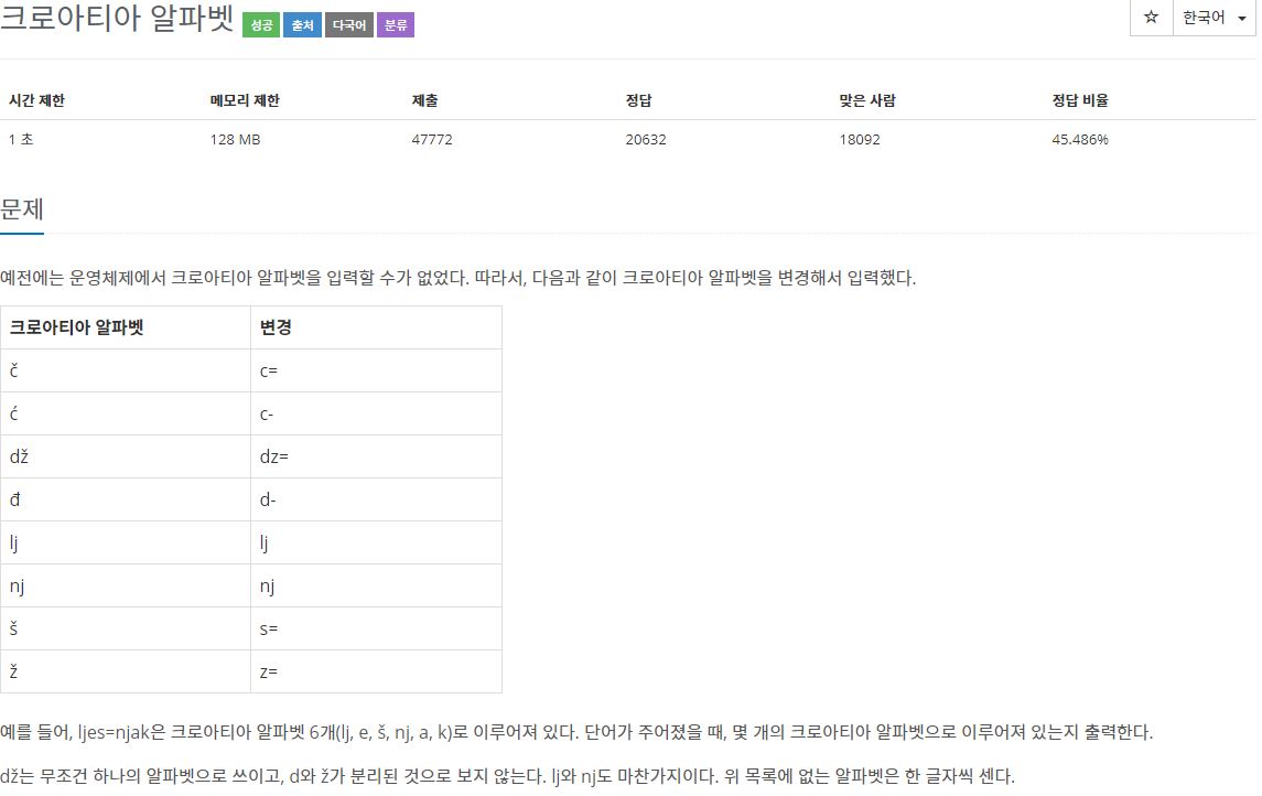 문자열의 아홉 번째 문제인 크로아티아 알파벳입니다.