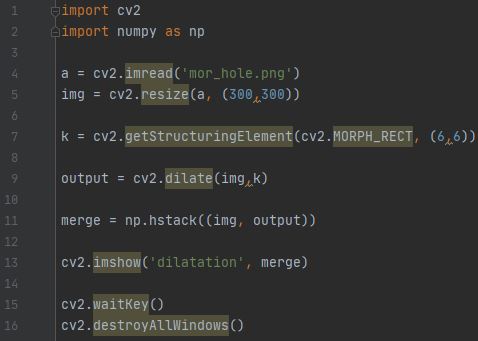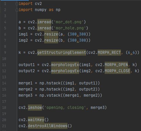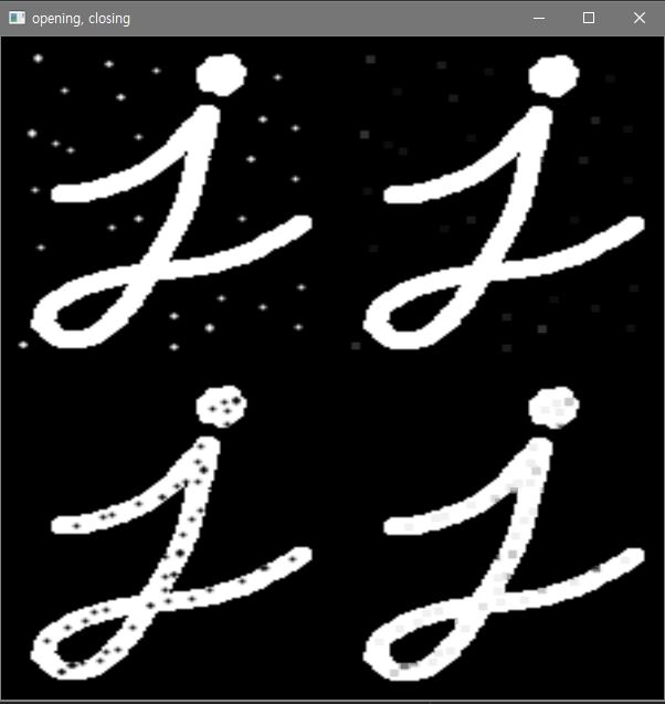 - cv2.MORPH_OPEN은 열림, cv2.MORPH_CLOSE는 닫힘입니다.