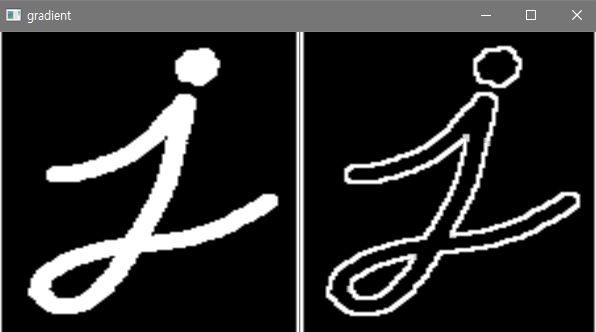 - morphologyEx의 op를 cv2.MORPH_GRADIENT를 주게 되면 그래디언트 연산을 수행합니다.