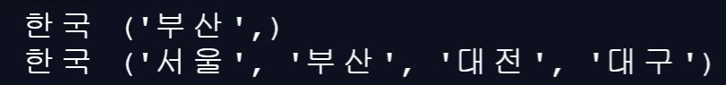 첫 번째, 결과는 튜플의 형태로 출력된다는 것