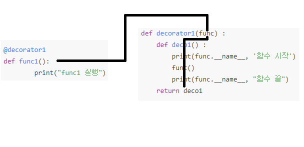 이렇게 데코레이터는 함수를 감싸는 형태로 되어있습니다. @데코레이터는 따라서 기존의 함수를 수정하지 않으면서