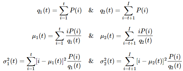 - 오츠 이진화 알고리즘은 Bimodal 히스토그램으로 작업하기 때문에 그룹 내의 분산을 최소로 하는 임계값으로 설정합니다. 모든 t값에 대해 계산을 하기 때문에 연산속도가 오래 걸려 Recursion을 이용해 효율적으로 계산하여 연산 속도를 올렸습니다.