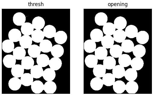 opening = cv2.morphologyEx(thresh, cv2.MORPH_OPEN, kernel, iterations = 2)