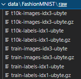 data 폴더가 생성되며 FashionMNIST 데이터가 다운로드 받아진 것을 볼 수 있습니다.