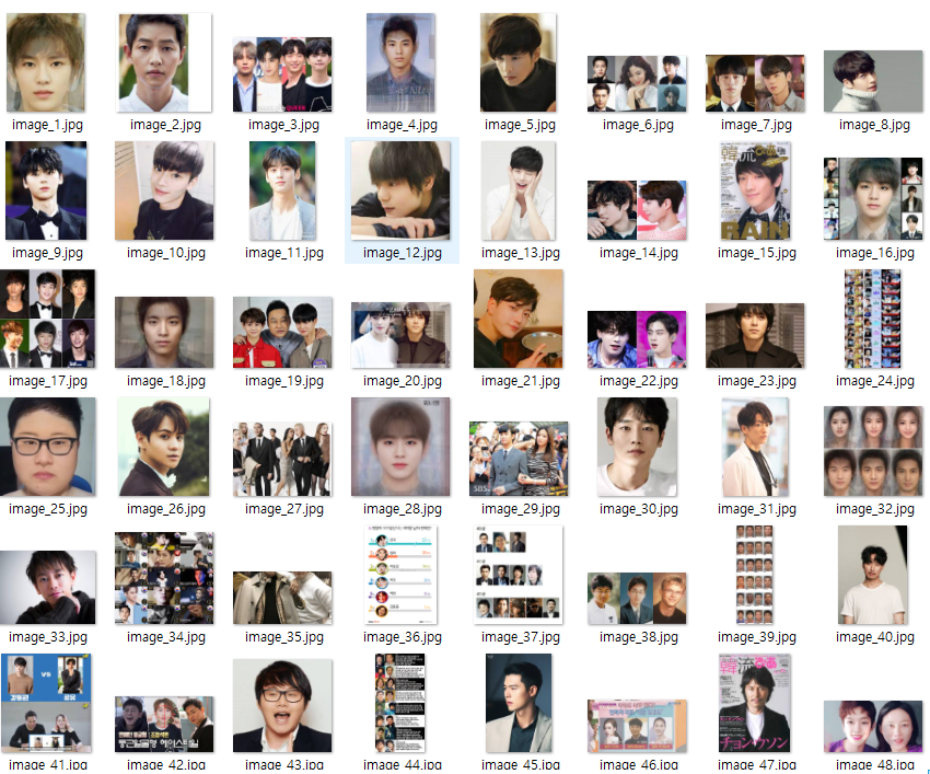 - "한국 남자 연예인 얼굴 사진"을 키워드로 크롤링한 결과입니다.