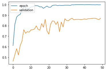 - 전이 학습으로 ResNet50을 적용시켜 학습시켜보았습니다.